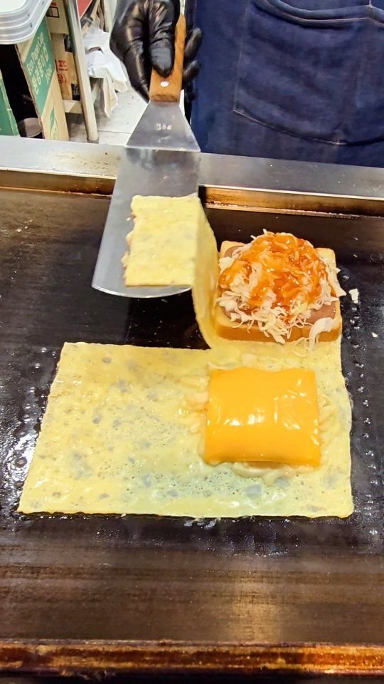 - Balik roti agar mendapatkan telur di semua sisi.