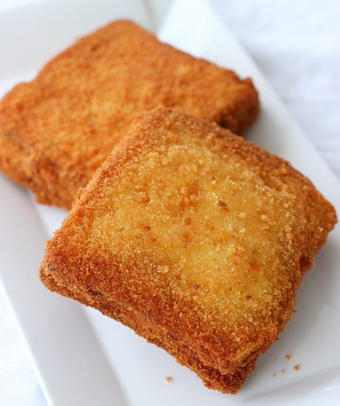 - Goreng roti yang sudah dibaluri dengan adonan putih telur menggunakan minyak panas. Goreng sampai warna berubah jadi kecokelatan.