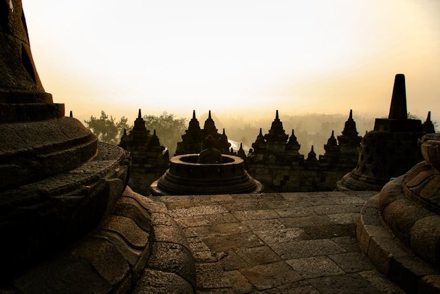 Candi Borobudur kental akan aura yang menenangkan. Terletak di dataran tinggi, membuatnya punya udara yang segar, lingkungan bersih, serta spot nyaman untuk sekadar berdiam diri. Candi Borobudur tepat dijadikan tempat bermeditasi.