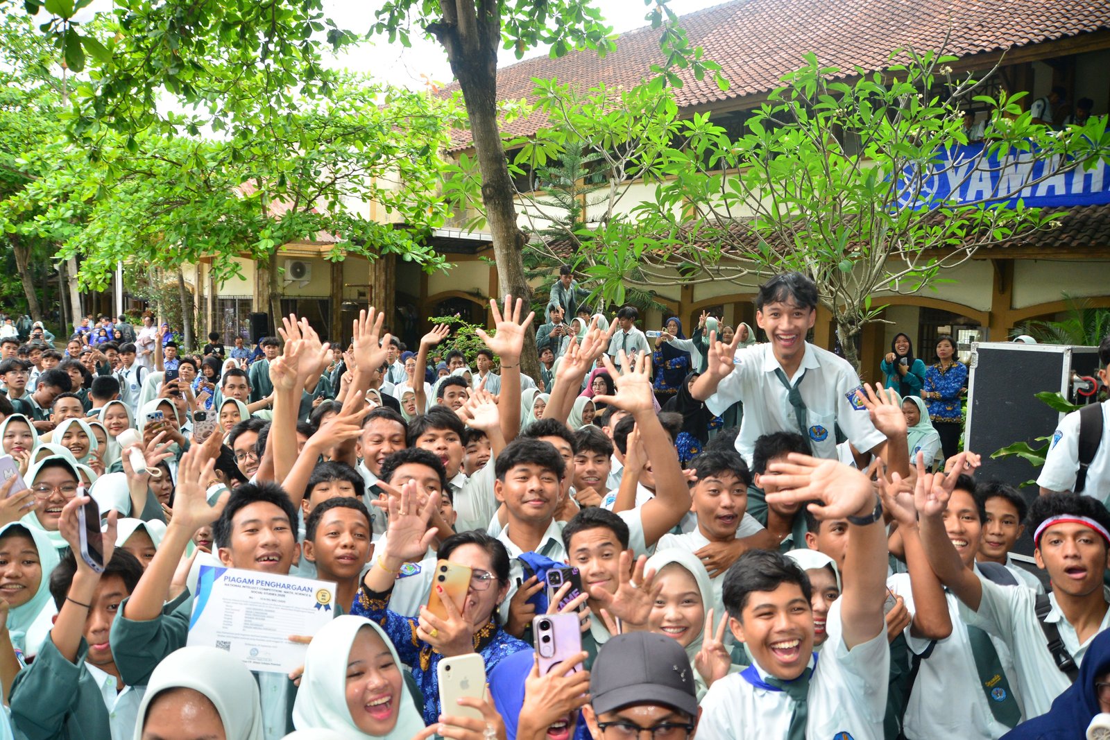 Jelang race MotoGP seri Indonesia di Mandalika International circuit 3-5 Oktober 2025,Yamaha menggelar aktivitas berbeda untuk lebih dekat dengan para penggemar. Kali ini Fabio Quartararo dan Alex Rins menyambangi sekolah buat Meet & Greet dengan ratusan pelajar yang heboh bertemu langsung dengan duo rider Monster Energy Yamaha MotoGP tersebut, Rabu 1 Oktober 2025.