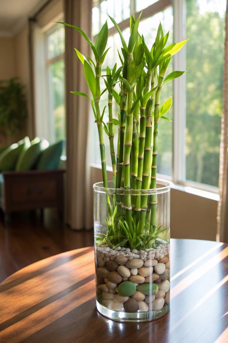 Bambu mini sendiri sebenarnya tidak berasa dari China, melainkan Afrika Barat. Bisa disebut sebagai keberuntungan karena tanaman bambu dalam budaya Tionghoa memberikan energi positif. Bambu mini biasanya akan dirangkai, dihias menggunakan pita, dan diletakkan dalam pot. Bagian bawahnya bisa diisi air yang harus diganti kurang lebih 4-5 hari sekali. Bambu mini ini sangat cocok untuk dijadikan pajangan di ruang tamu, kamar, bahkan dapur.