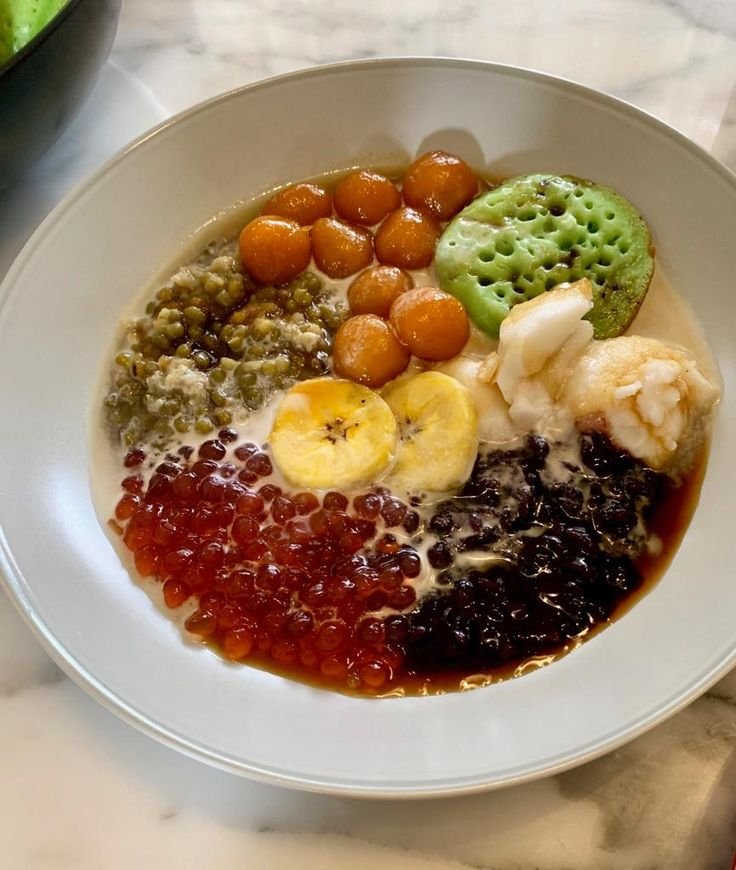 Menu yang satu ini lebih banyak di Pulau Sumatera, tepatnya di Sumatera Barat, tempat lahirnya kuliner bernama bubur kampiun. Dari look-nya, bubur ini terlihat punya aneka macam bubur yang dijadikan satu dalam sebuah mangkuk. Ternyata, tercampurnya seluruh elemen ini terjadi karena ketidaksengajaan, lho. Semua bermula dari seorang nenek bernama Amai Zona yang terlambat mengikuti lomba kuliner bubur, sehingga ia mencampurkan sisa semua bubur jualannya yang tak habis. Siapa sangka bahwa kuliner tersebut disukai dan kini lebih sering disebut bubur kampiun.